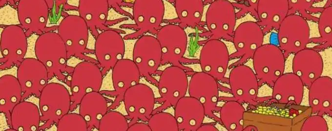 Provate a risolvere un’illusione ottica impegnativa ma divertente: il pesce tra i polpi è nascosto abbastanza bene, e dovete comunque cercare di trovarlo.