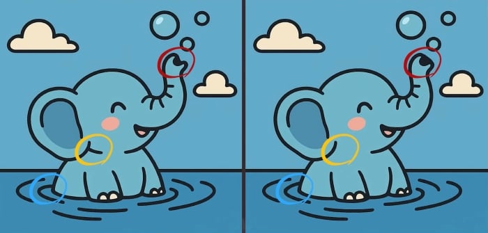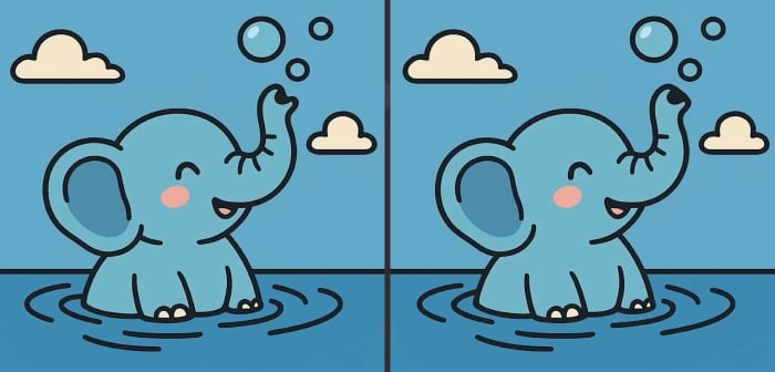 Davanti a voi ci sono due immagini di un elefante che gioca nell’acq A prima vista sembrano identiche, ma è solo un’illusione. Ci sono tre piccole differenze nascoste nelle immagini.