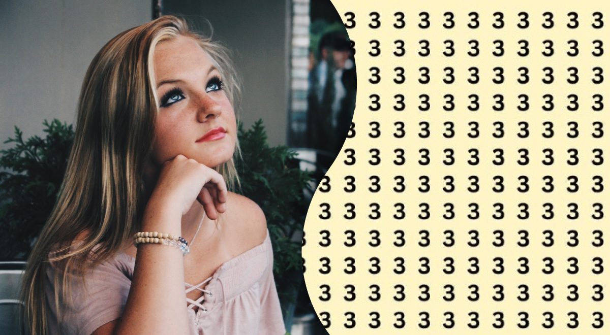 Nell’immagine vediamo un gran numero di cifre 3, disposte in righe e colonne. A prima vista sembra che non ci siano cifre particolari tra queste, ma in realtà non è così. Da qche parte, inosservato, si nasconde un cinque, che sarà difficile da trovare.
