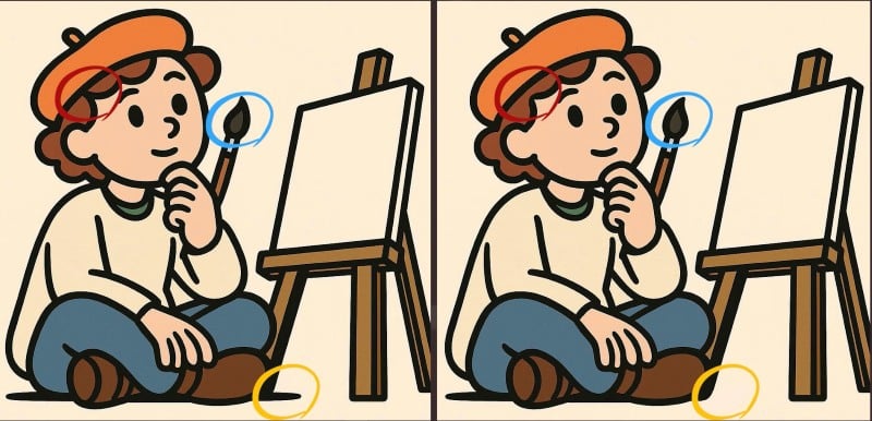 Siete pronti a mettere alla prova le vostre capacità di osservazione? Osservate due immagini di un artista seduto davanti a una tela. A prima vista può sembrare che le immagini siano del tutto identiche, ma ci sono tre piccole differenze tra loro.