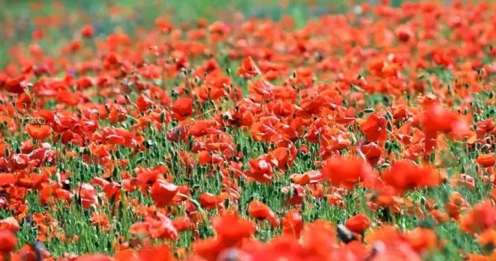 Nella foto vediamo un campo di papaveri. I fiori coprono il campo come una spessa coltre rosso-verde e non hanno fine. Sembrerebbe che questa sconfinata bellezza floreale non sia stata disturbata da alcun animale. Ma non è così: da qche parte tra i fiori si nasconde un’ape, che sarà molto difficile da individe.