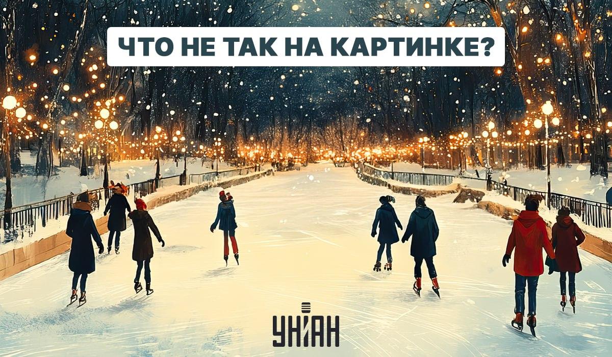 E per chi volesse mettersi alla prova, pubblichiamo risposta. L’errore nella foto sta nelle calzature di uno dei visitatori della pista di pattinaggio. Invece dei pattini, indossa delle rotelle, con le qi è impossibile pattinare sul ghiaccio.