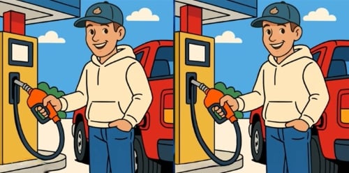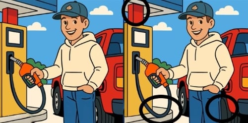 Osservate attentamente due immagini di un uomo che fa il pieno di benzina a un’auto. A prima vista può sembrare che le immagini siano esattamente ugi, ma in realtà ci sono tre piccole differenze tra di esse.
