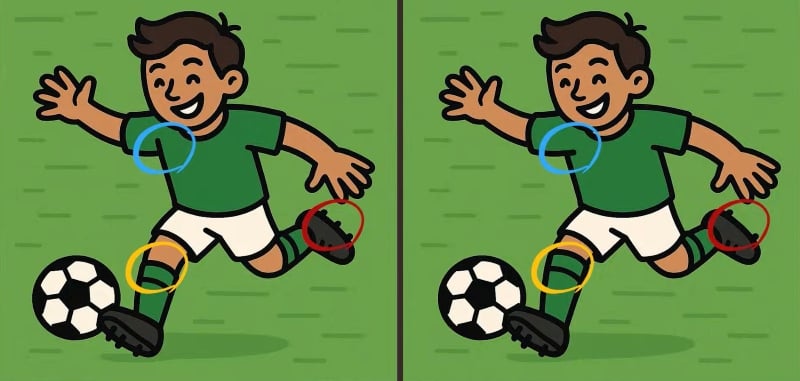 Siete pronti a mettervi alla prova? Osservate due immagini di un giocatore di calcio. A prima vista sembrano esattamente ugi, ma in esse sono nascoste tre sottili differenze. Riuscite a trovarle in soli 23 secondi?