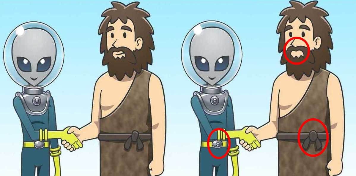Nell’immagine presentata, si possono notare due alieni e due cavernicoli identici.