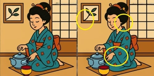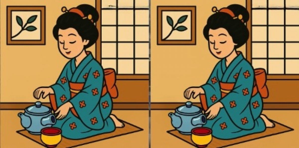 Vi trovate di fronte a un compito classico: due immagini di una donna cinese con una tazza di tè sembrano identiche, ma in realtà ci sono tre piccole differenze tra loro. Possono rigdare il colore, la forma o la disposizione dei dettagli.