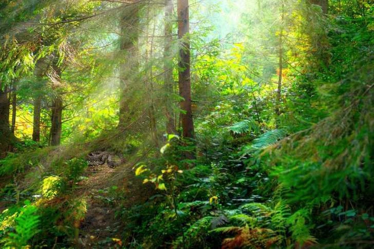 L’immagine mostra una fitta foresta verde. Da qche parte si nasconde un serpente, che dobbiamo trovare.