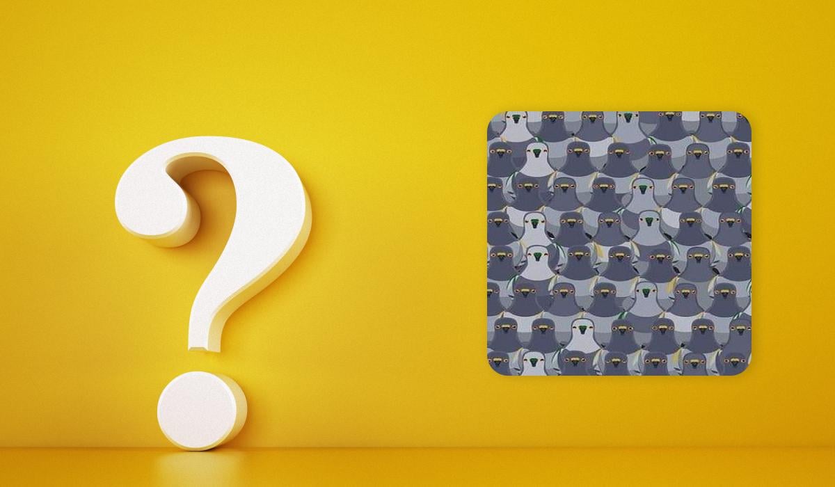 Il gatto si nasconde in basso a destra tra i piccioni. Questa immagine ha fatto sì che migliaia di adulti si grattassero la nuca cercando di trovare il gatto nascosto nell’immagine.